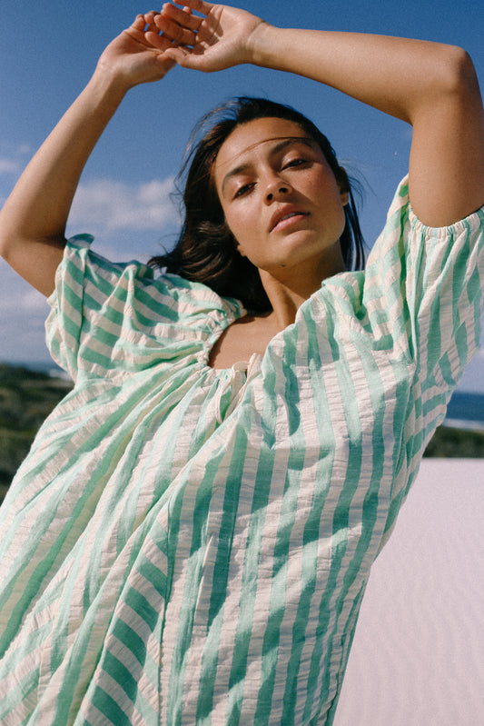 Chloe Summer Dress | Seafoam Cotton Stripe