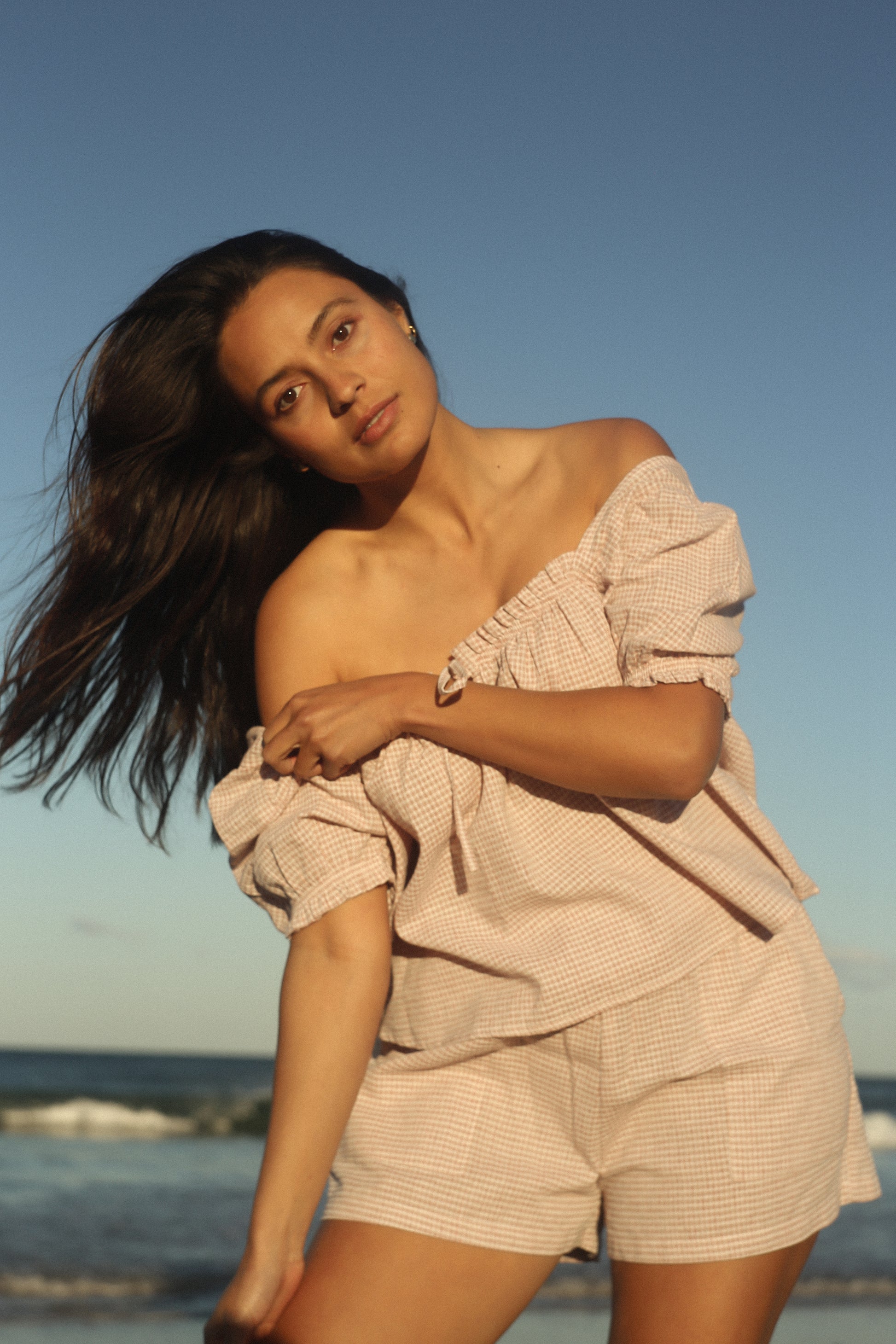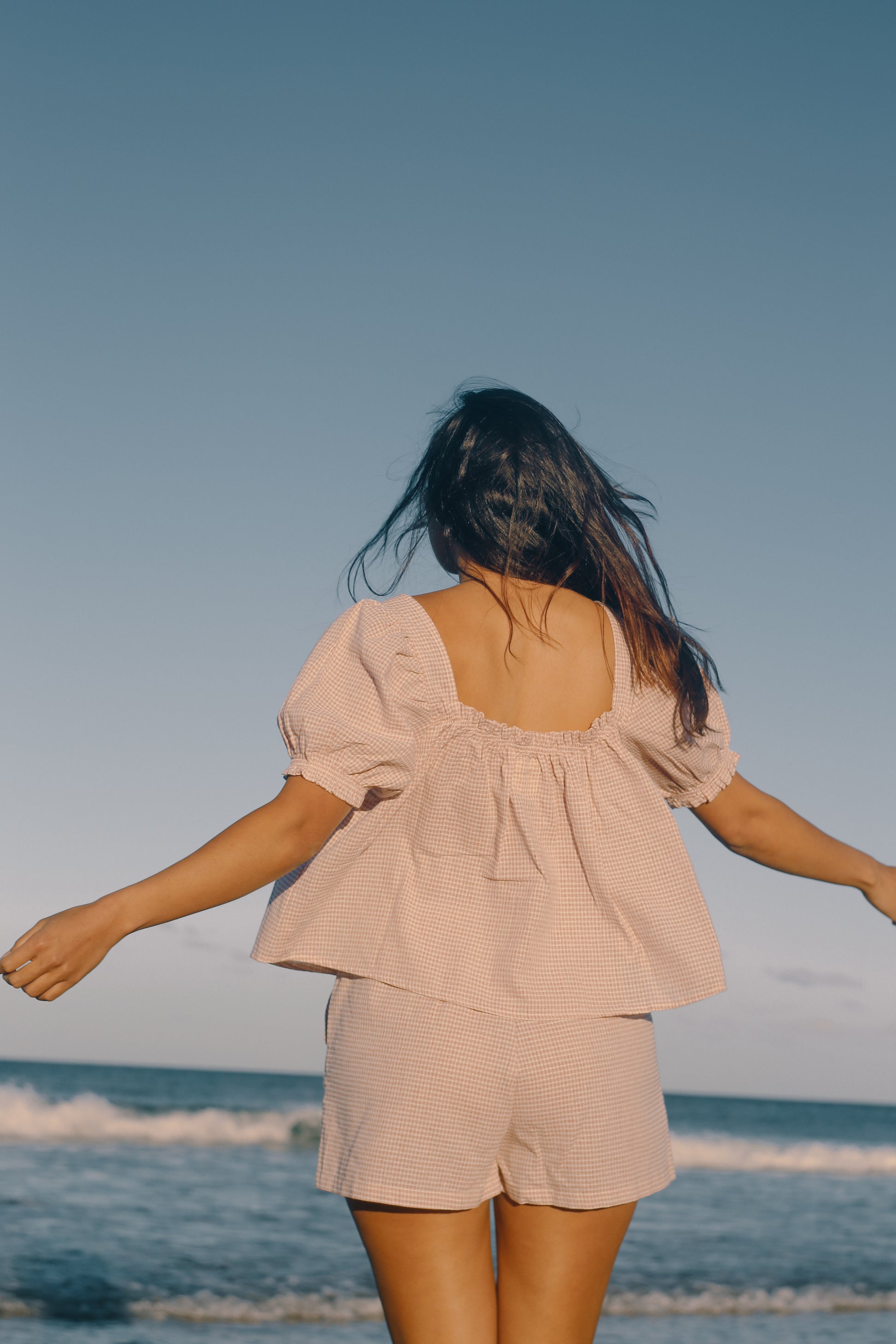 The Ava Blouse is a new season style designed to bring a playful, feminine touch to your everyday wardrobe. With an elasticated bust and tie-front detail, it flatters while remaining effortlessly comfortable. Sweet puff sleeves with gentle elastic add charm, making it a versatile piece for both casual days and dressed up moments. Pair it back with denim for an easy daytime look, or style with any TBR bottoms when you want something a little more elevated. A timeless blouse with endless styling potential. Crafted from a lightweight blend of 15% Linen and 85% Cotton in our exclusive Dusty Rose Check, the Ava Blouse feels soft and breathable against the skin.
